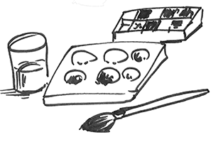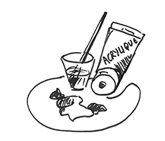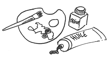 L’index et le pouce en pince prolongés par le pinceau dont les poils sont chargés de peinture. Le geste est précis et le regard aiguisé. La toile blanche fixe le pigment et la magie s’opère…