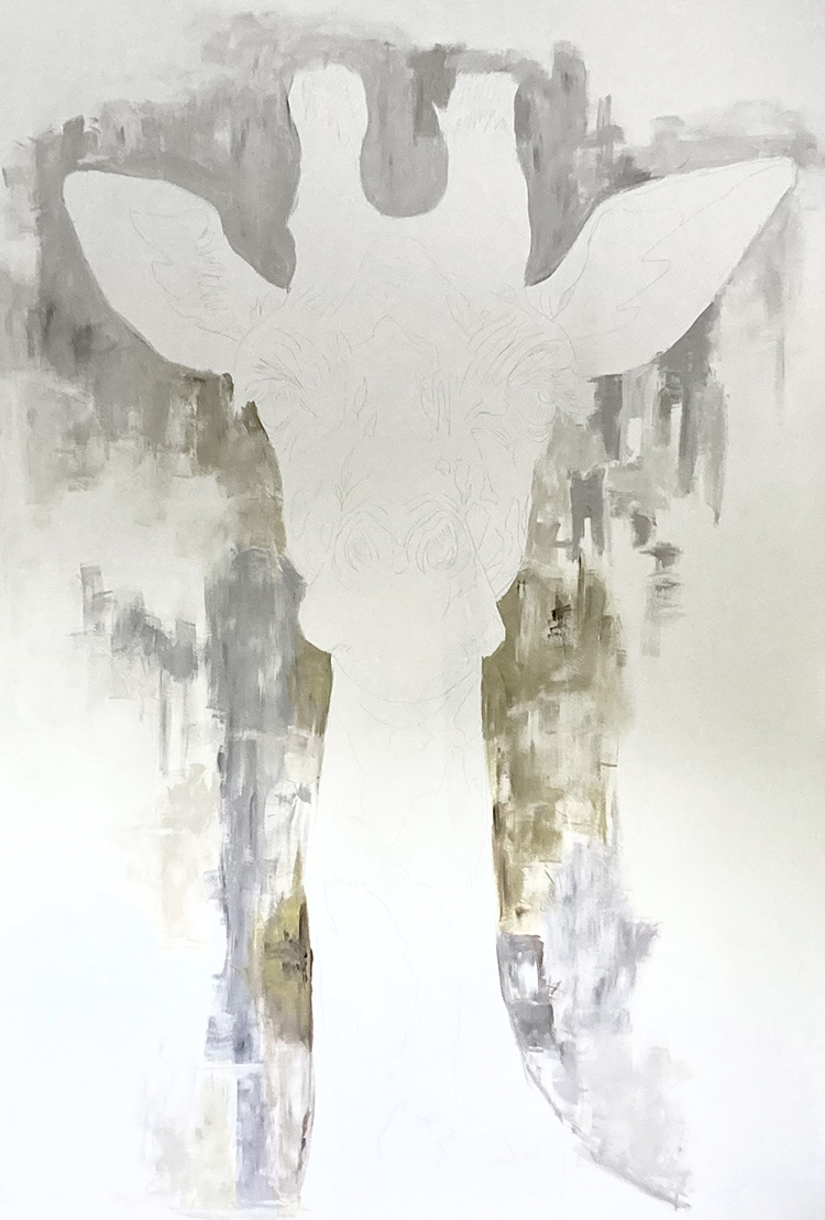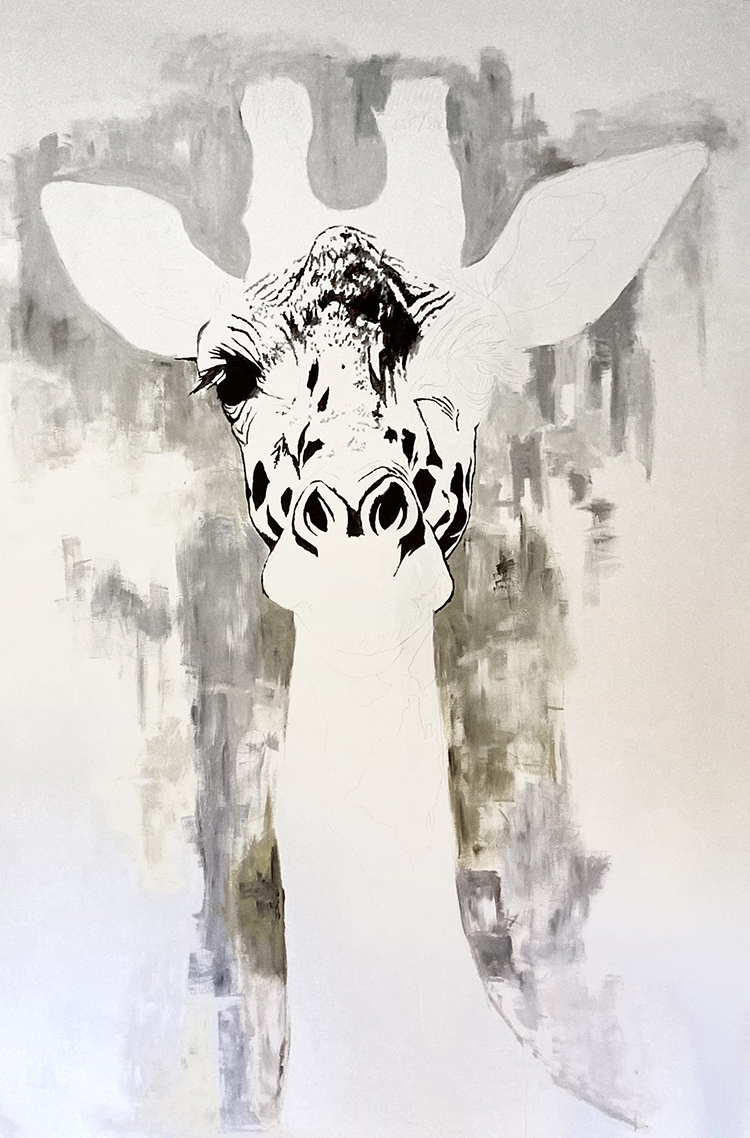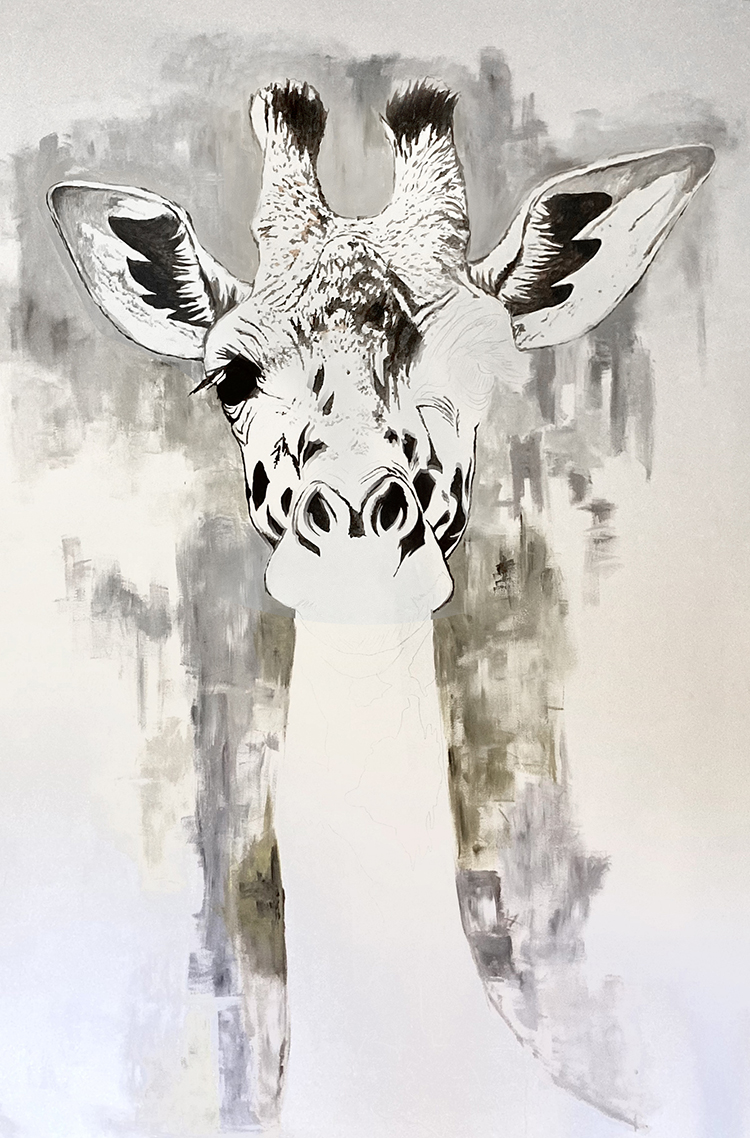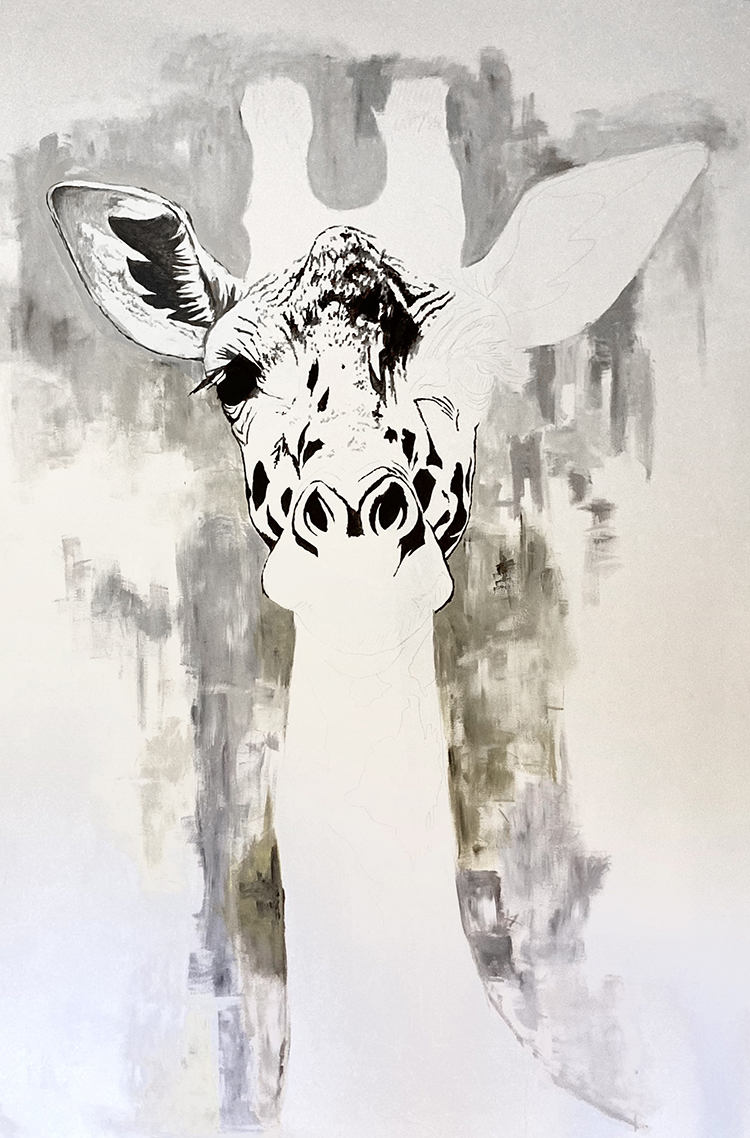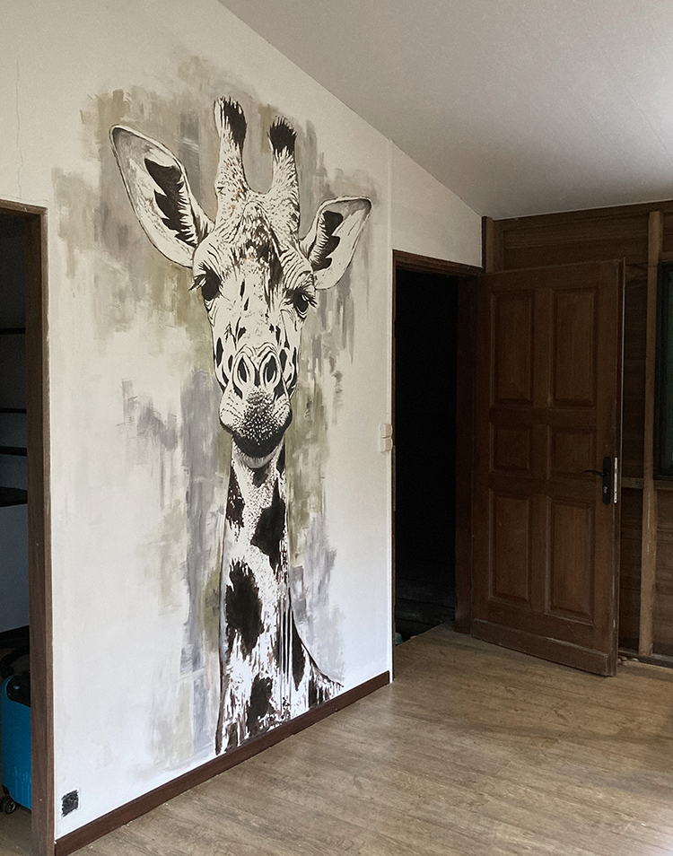 Un challenge pour tester ma peinture sur de grandes surfaces. Un mur de 3m fraichement peint qui ne demande qu’à être décoré.